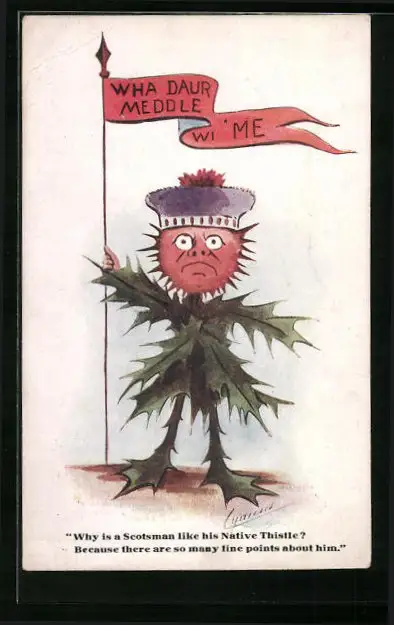 Künstler-AK Cynicus: Why is a Scotsman like his native thistle?