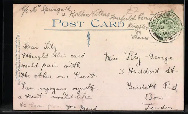 alte Ansichtskarte, gelaufen 1908, Eckknicke oben, guter Zustand