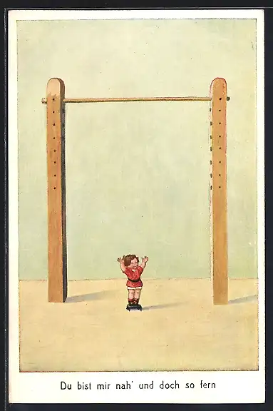 Künstler-AK Däumling möchte ans Reck, Du bist mir nah`...