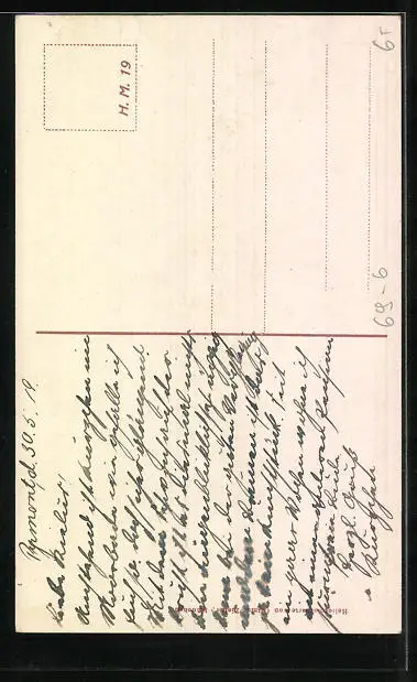 Personenbezogene Daten auf der Rückseite der Karte wurden durch blauen Textmarker unkenntlich gemacht. Die blauen Stellen sind auf die Vorderseite durchgeweicht und wirken sich negativ auf das Postkartenfoto aus