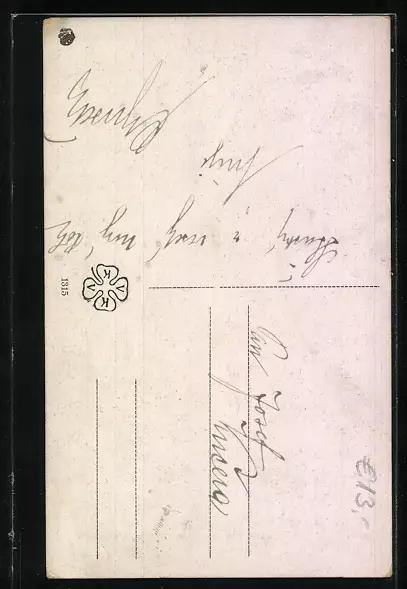 Personenbezogene Daten auf der Rückseite der Karte wurden durch blauen Textmarker unkenntlich gemacht. Die blauen Stellen sind auf die Vorderseite durchgeweicht und wirken sich negativ auf das Postkartenfoto aus