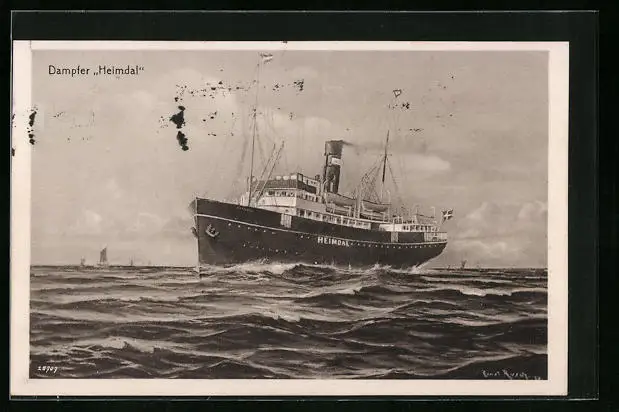 Künstler-AK Dampfer Heimdal in voller Fahrt