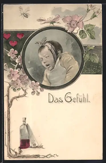 Künstler-AK Das Gefühl, Kind mit Zahnschmerzen