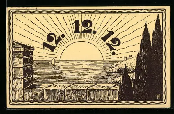 Künstler-AK Datum 12.12.12., aufgehende Sonne