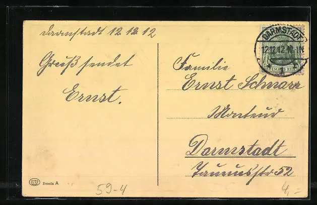 alte Ansichtskarte, gelaufen 1912, Stempelspur, guter Zustand