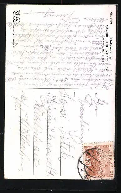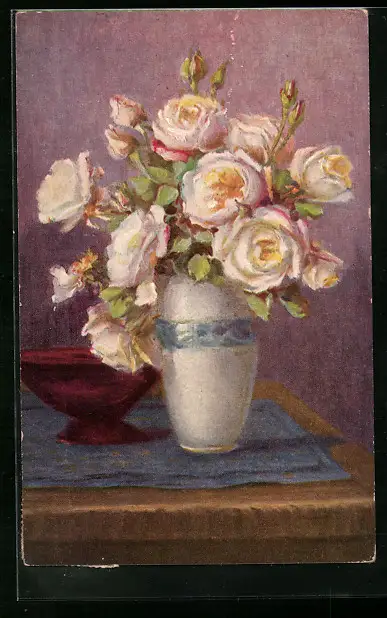 Künstler-AK Degi Nr. 1229: Vase mit Rosen, Hollensteiner, Ölgemälde-Imitations-AK
