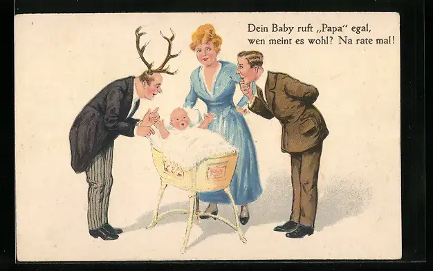Künstler-AK Dein Baby ruft Papa egal, wen meint es wohl?