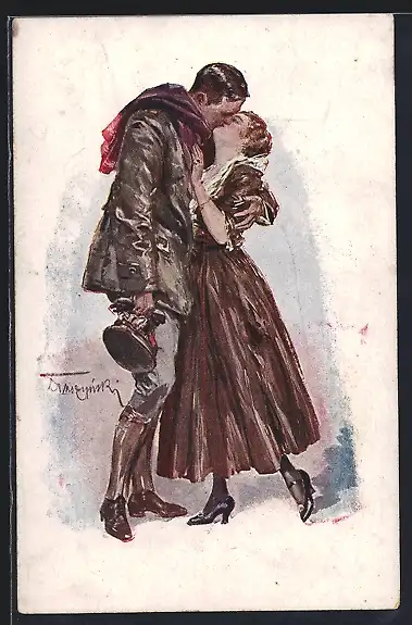 Künstler-AK Der Flieger küsst seine Frau
