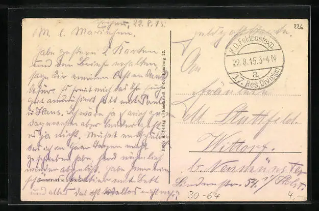 alte Ansichtskarte, gelaufen als Feldpost 1915, guter Zustand