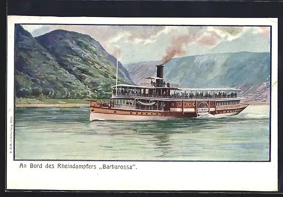 Künstler-AK Der Rheindampfer Barbarossa unter Volldampf
