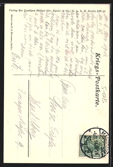 gelaufen 1914, Abriebspur li. oben, Stempelspur, guter Zustand