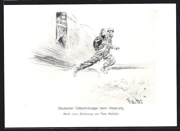 Künstler-AK Deutscher Fallschirmjäger beim Absprung