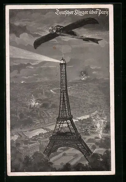 Künstler-AK Deutscher Flieger über dem Eifelturm in Paris