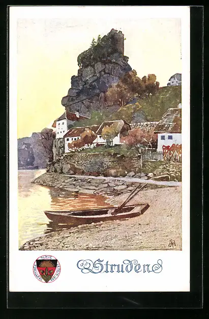 Künstler-AK Deutscher Schulverein Nr. 281: Struden, Uferpartie mit Boot