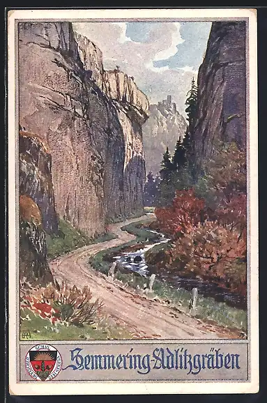 Künstler-AK Deutscher Schulverein Nr. 451: Semmering, Partie an den Adlitzgräben