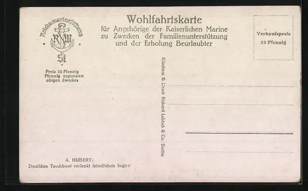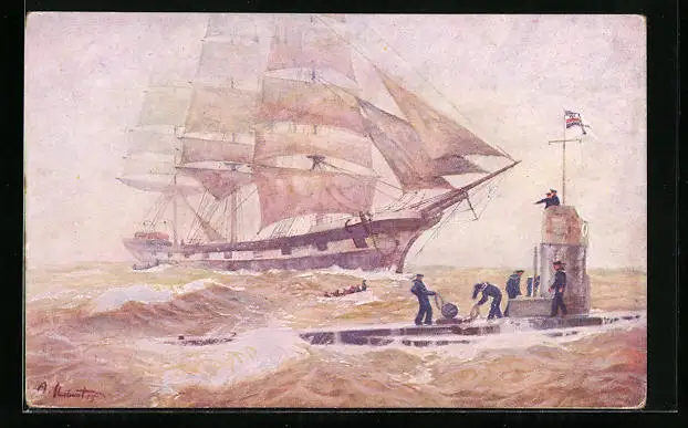 Künstler-AK Deutsches U-Boot versenkt feindlichen Segler