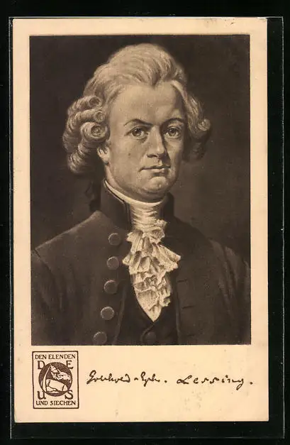 Künstler-AK Dichter Gotthold Ephraim Lessing, Halbportrait mit Perücke