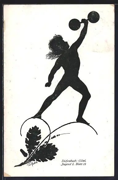 Künstler-AK Diefenbach: Junge stemmt ein Gewicht in die Höhe, Jugend