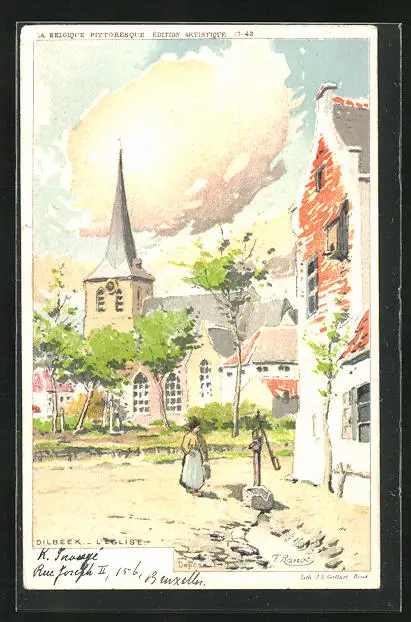Künstler-AK Dilbeek, L`Eglise, Strassenpartie an der Kirche
