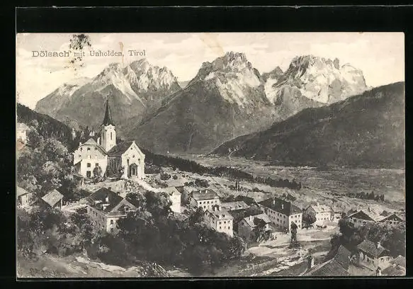 Künstler-AK Dölsach, Totalansicht mit Unholden