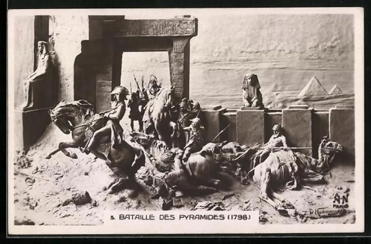 Künstler-AK Domenico Mastroianni: Bataille des Pyramides 1798, Napoleon auf seinem Ross