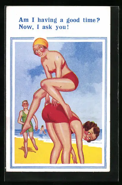 Künstler-AK Donald McGill: Am I having a good time? Now I ask you!