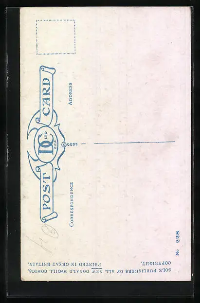 Personenbezogene Daten auf der Rückseite der Karte wurden durch blauen Textmarker unkenntlich gemacht. Die blauen Stellen sind auf die Vorderseite durchgeweicht und wirken sich negativ auf das Postkartenfoto aus