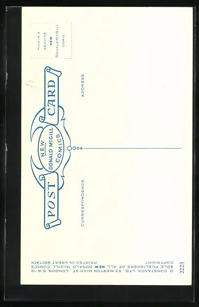 Personenbezogene Daten auf der Rückseite der Karte wurden durch blauen Textmarker unkenntlich gemacht. Die blauen Stellen sind auf die Vorderseite durchgeweicht und wirken sich negativ auf das Postkartenfoto aus