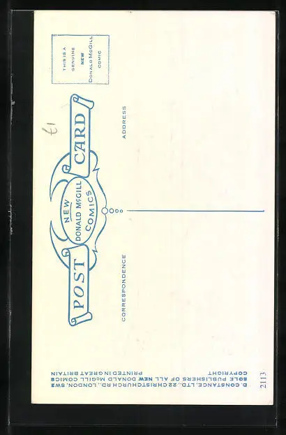 Personenbezogene Daten auf der Rückseite der Karte wurden durch blauen Textmarker unkenntlich gemacht. Die blauen Stellen sind auf die Vorderseite durchgeweicht und wirken sich negativ auf das Postkartenfoto aus
