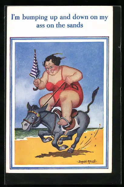 Künstler-AK Donald McGill: I`m bumping up and down on my ass on the sands