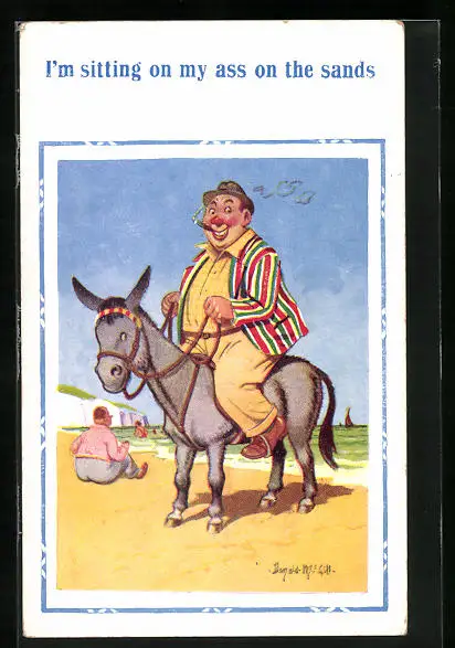 Künstler-AK Donald McGill: I`m sitting on my ass on the sands