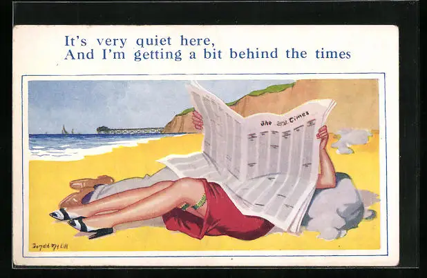 Künstler-AK Donald McGill: It`s very quiet here, ANd I`m getting a bit behind the times.