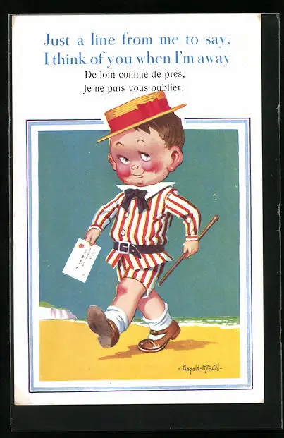 Künstler-AK Donald McGill: Just a line for me to say,...