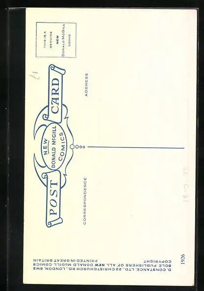 Personenbezogene Daten auf der Rückseite der Karte wurden durch blauen Textmarker unkenntlich gemacht. Die blauen Stellen sind auf die Vorderseite durchgeweicht und wirken sich negativ auf das Postkartenfoto aus