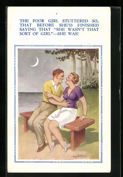Künstler-AK Donald McGill: The poor girl stuttered so,...