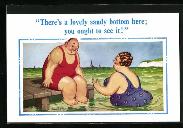 Künstler-AK Donald McGill: There`s a lovely sndy bottom here...