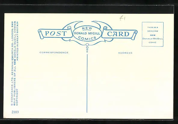Personenbezogene Daten auf der Rückseite der Karte wurden durch blauen Textmarker unkenntlich gemacht. Die blauen Stellen sind auf die Vorderseite durchgeweicht und wirken sich negativ auf das Postkartenfoto aus