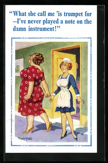 Künstler-AK Donald McGill: What she call me `is trumpet for...