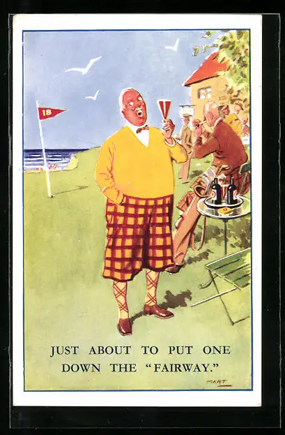 Künstler-AK Doppeldeutiger Golfer-Humor