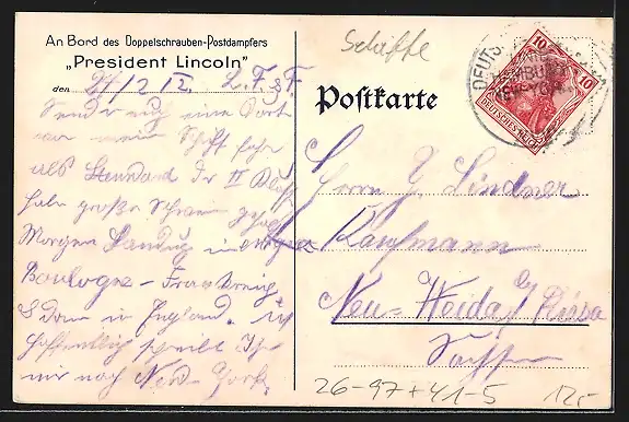 Künstler-AK Doppelschrauben-Postdampfer President Grant der Hamburg-Amerika Linie