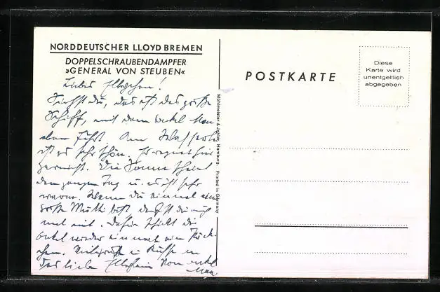 Künstler-AK Doppelschraubendampfer General von Steuben des Nordd. Lloyds in voller Fahrt