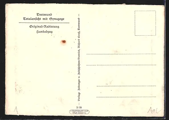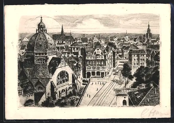 Künstler-AK Dortmund, Totalansicht mit Synagoge