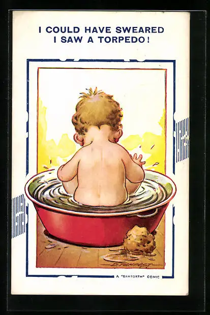 Künstler-AK Douglas Tempest: Rückenansicht von badendem Jungen