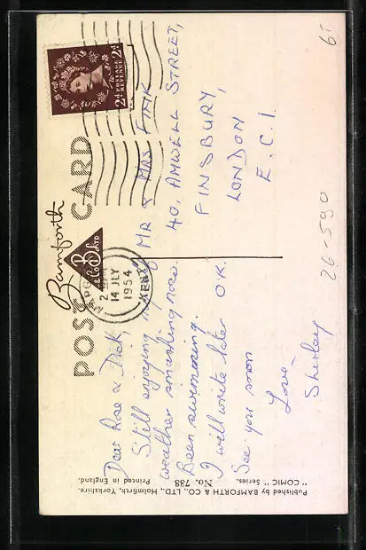 alte Ansichtskarte, gelaufen 1954, Eckknicke oben, guter Zustand