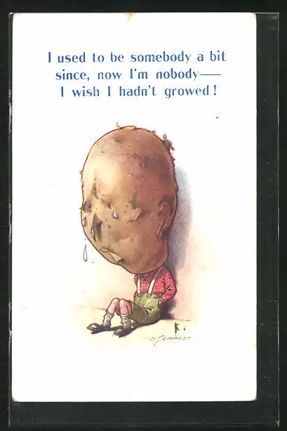Künstler-AK Douglas Tempest: Trauriger Mann mit Kartoffelkopf