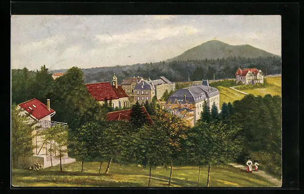 Künstler-AK Drei-Aehren, Ortsansicht mit den Landhäusern