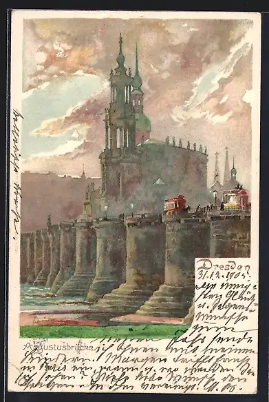 Künstler-AK Dresden, Augustusbrücke mit Dom