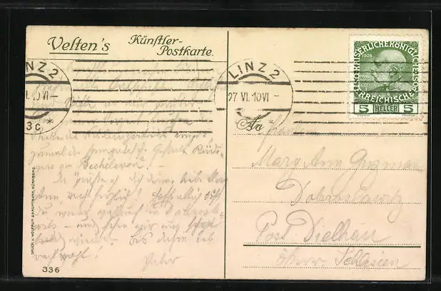 alte Ansichtskarte, gelaufen 1910, Stempelspur, guter Zustand