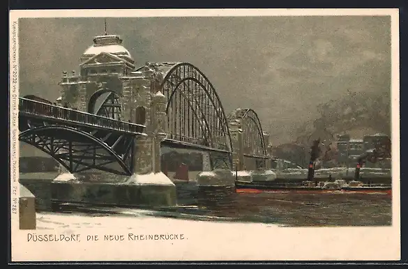 Künstler-AK Düsseldorf, an der neuen Rheinbrücke