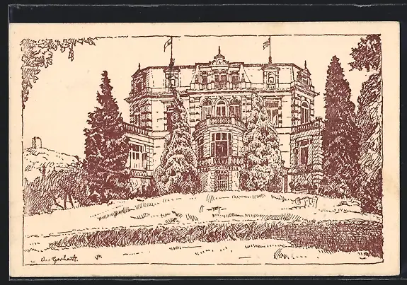 Künstler-AK Durlach-Karlsruhe, Parkschlössle, Ettlingerstrasse 33